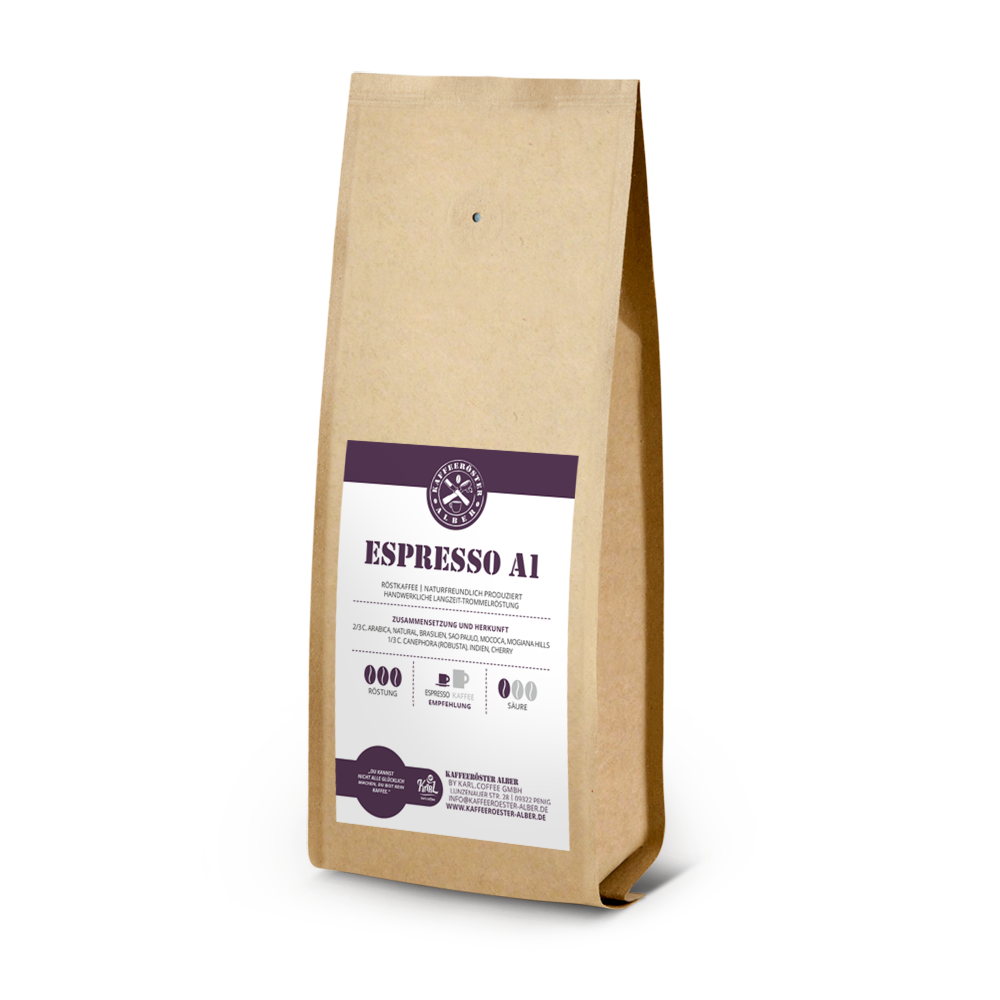 Traditionell wird in Italien eine Kaffeemischung, ein sogenannter Blend, aus Arabica- und Robustabohnen verwendet, die etwas dunkler geröstet sind als Bohnen für Filterkaffee. Je südlicher in Italien, desto dunkler die Röstung und desto höher der Robustaanteil. Nach diesem Vorbild des kleinen Schwarzen entstand unser Espresso A1. A1 deshalb, weil es unser erster Espresso war und bis heute der beliebteste ist. Er soll möglichst nah am Original sein. Das größte Kompliment für uns ist, wenn ein Italiener unseren Caffè für gut befindet!